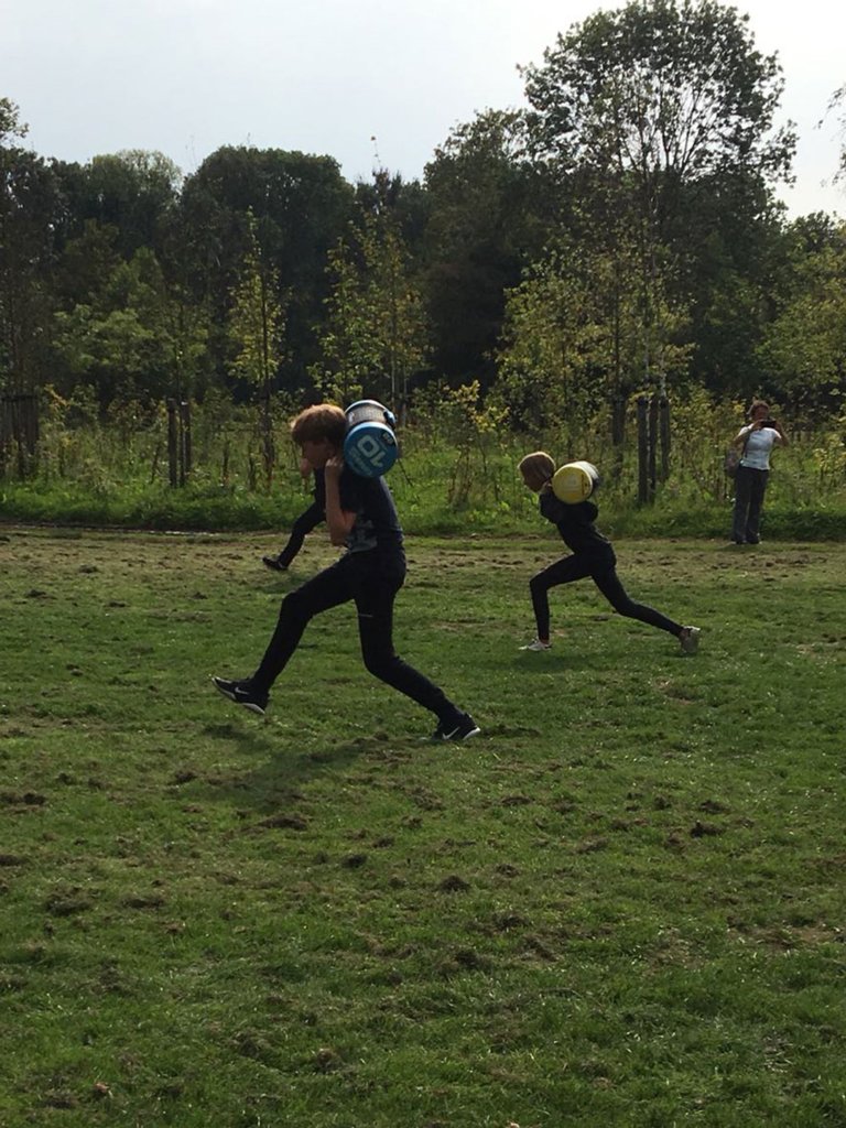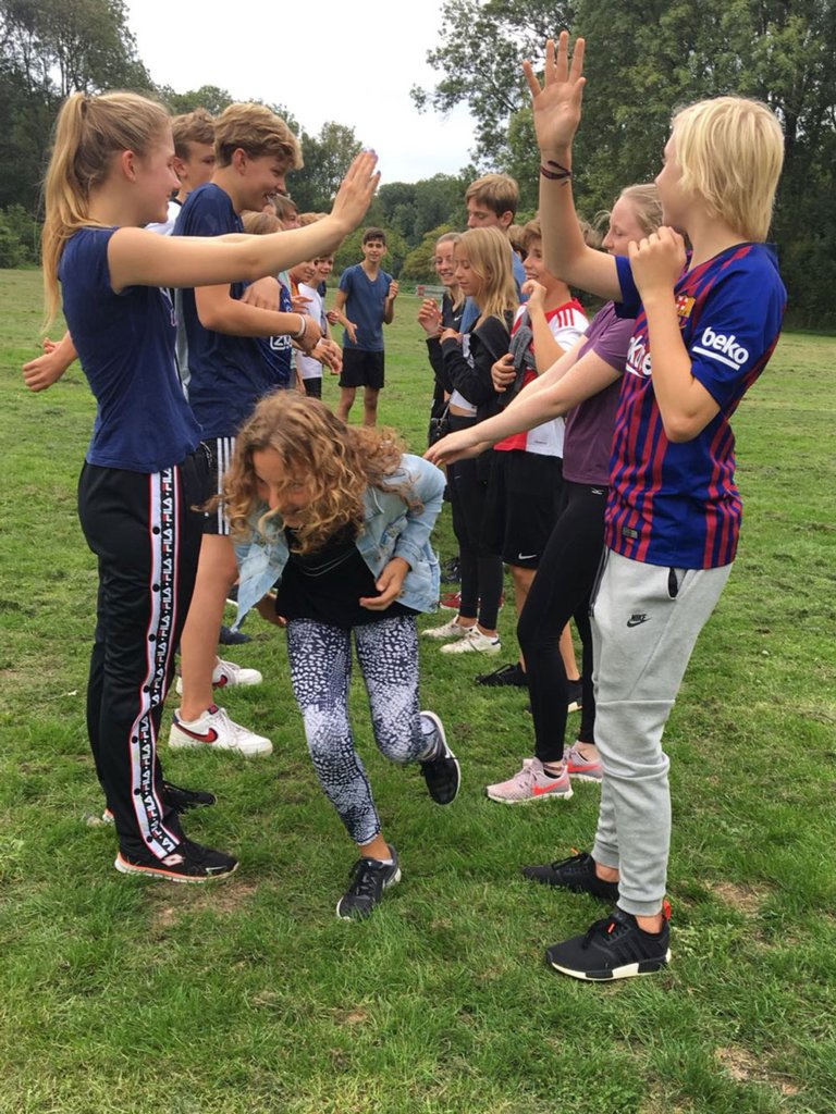 op de eerste schooldag ging klas 3 meteen vol aan de slag met EEn reeks fysieke en creatieve uitdagingen.