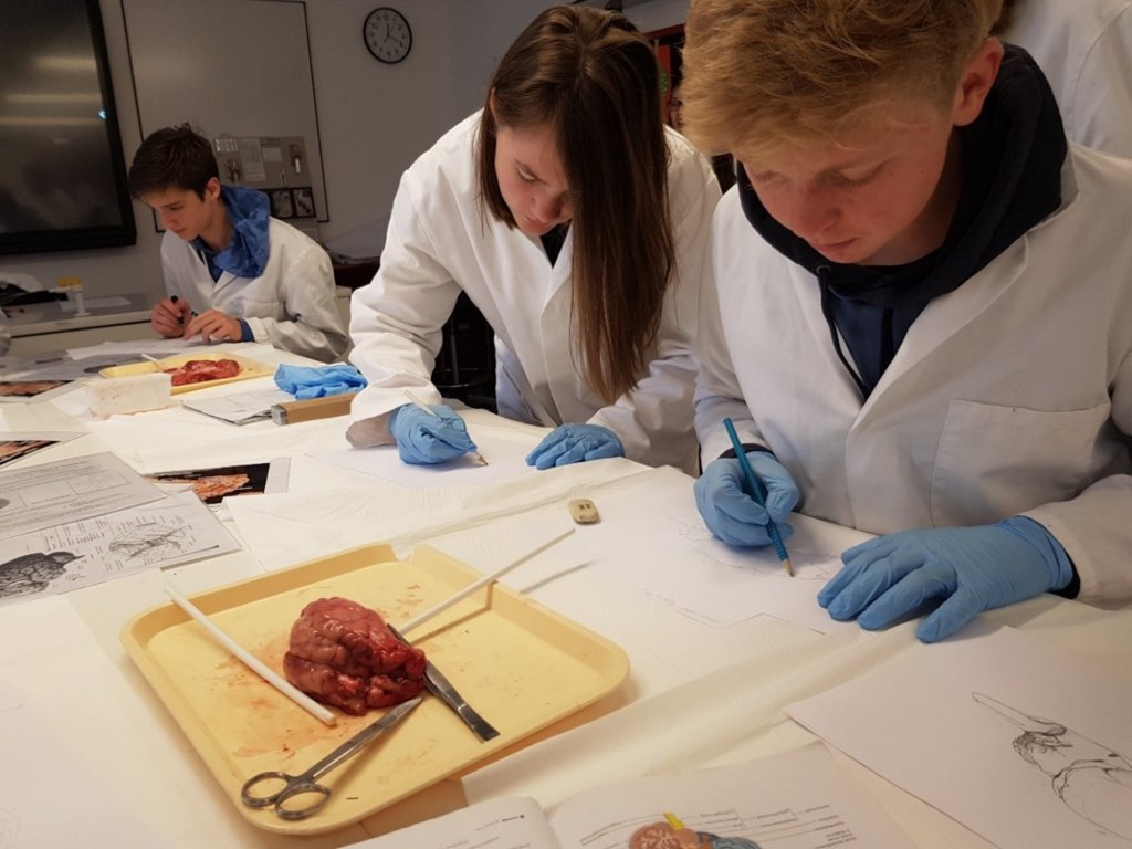 ‘We kregen per viertal een stel rauwe, bloederige kalfshersenen opgediend. In eerste instantie voelde het heel onbekend, maar naarmate we er beter naar keken, kwamen we steeds meer hersendelen tegen waar we al eerder over hadden geleerd.’